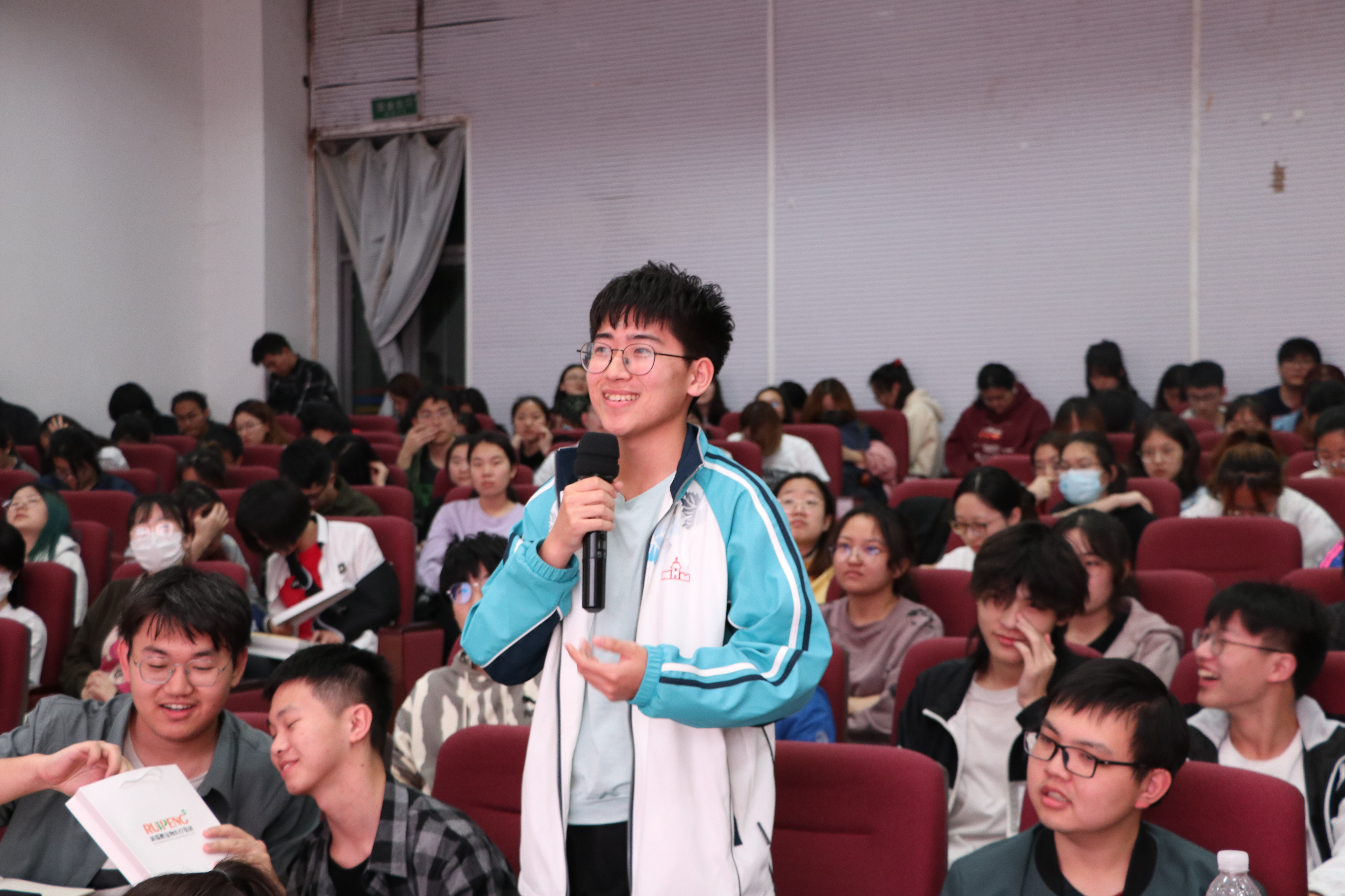 最后,张伟东讲话,并给在座的同学们答疑解惑。现场同学积极提问,场面非常热烈。张伟东认真耐心地回答了同学们的问题,并给予鼓励,同时也向在场提问的同学发放了学习用品。