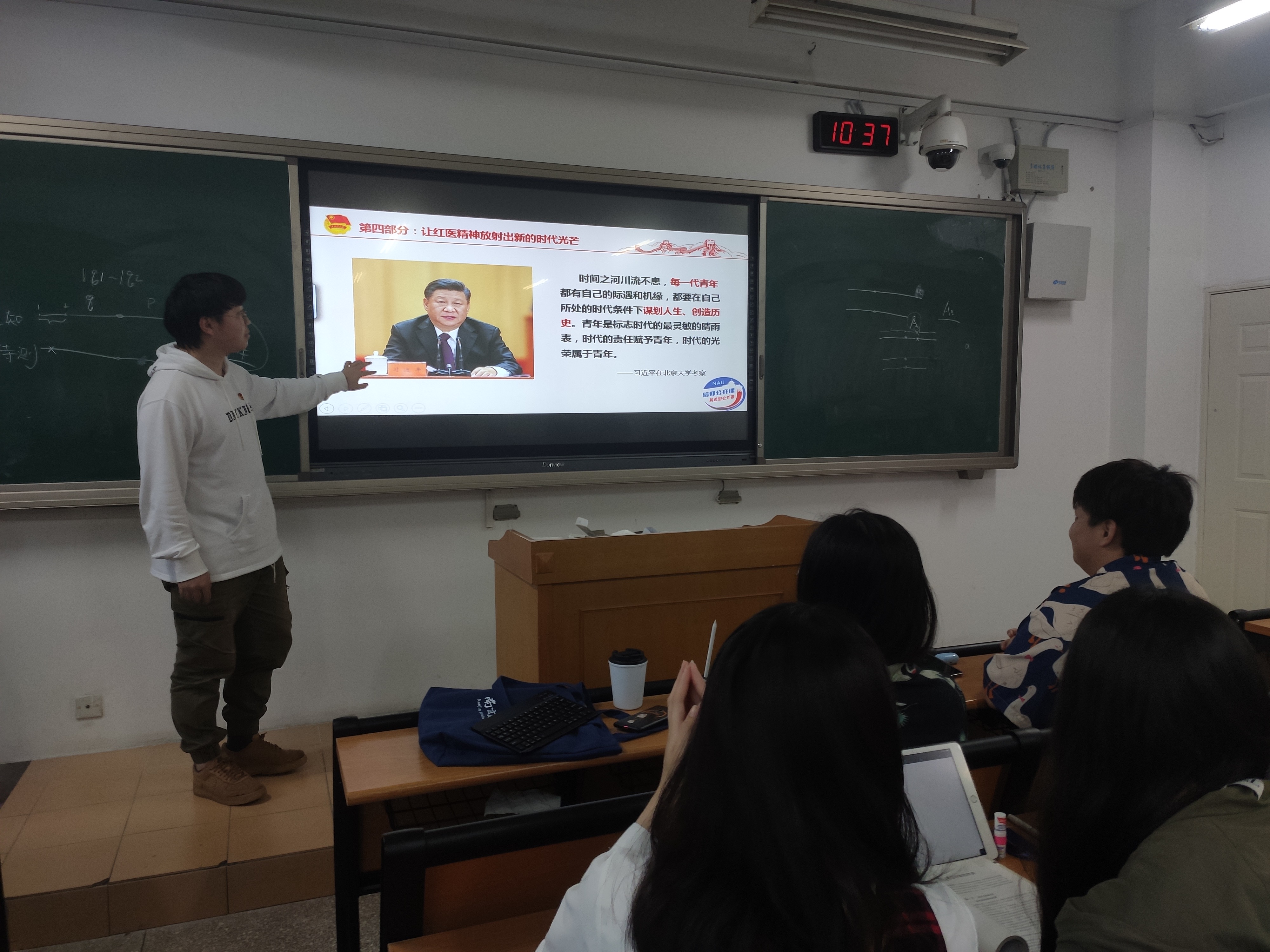 动医191团支部举行了“四史学习教育,忆初心,担使命”主题团日活动。通过PPT讲解“四史”,让同学们加深对党史、新中国史、改革开放史、社会主义发展史的记忆与理解,同学们从“四史”教育中,结合有关人物,深度思考,发现理想信念是共产党人的精神动力和理想源泉,加深跟随党的信念。