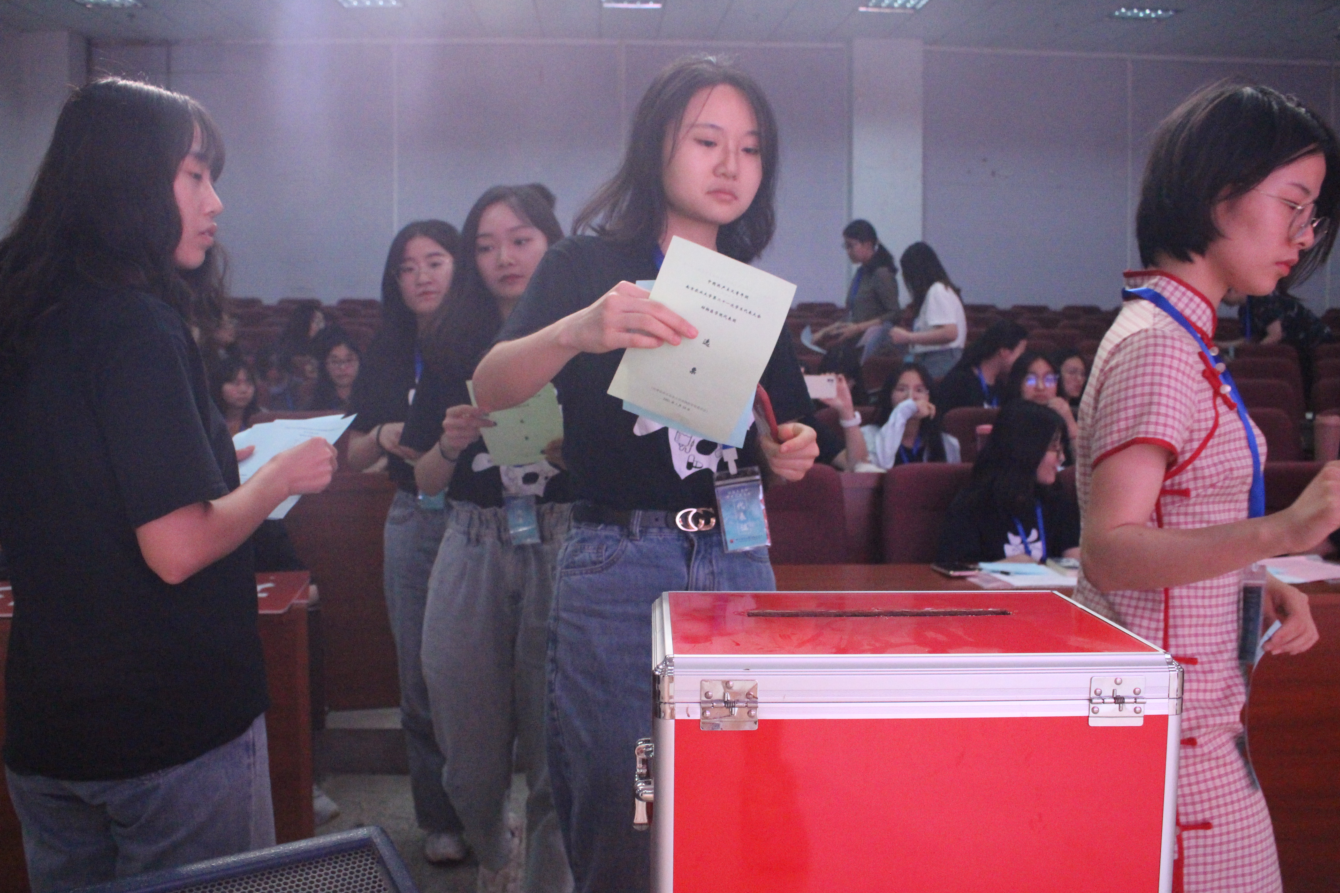 在此次学生代表大会上,第37届学生团委副书记钱佳瑜、杨依晨,院学生会主席高梦恬总结汇报了过去一年的工作,全体学生代表公开审议,并投票表决通过。