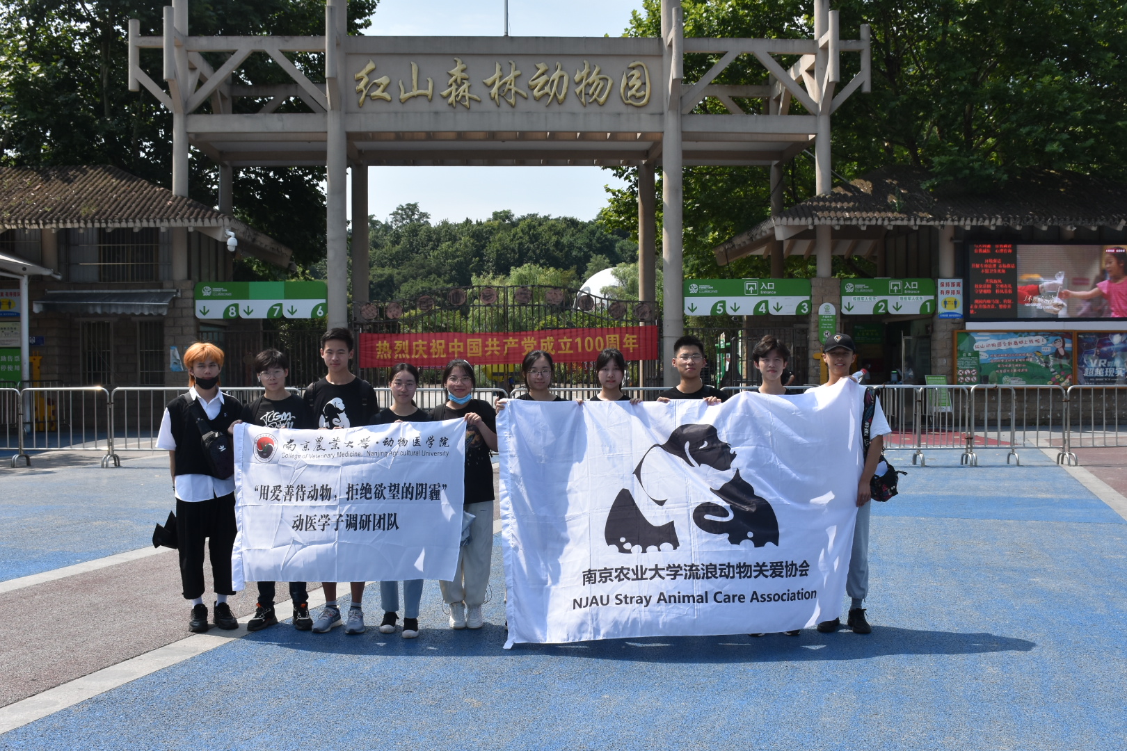 2021年7月13日一整日,“用爱善待动物,拒绝动物的阴霾”——南京农业大学流浪动物关爱协会暑期社会实践队伍分为五个小分队,分别前往南京中山植物园、玄武湖、新街口、莫愁湖等地进行了以“动物保护”为主题的问卷调查。7月14日上午九点至下午一点半,实践队伍中的11名成员前往南京红山动物园对游客及工作人员进行关于动物虐待、动物保护、动物福利的线下采访活动。