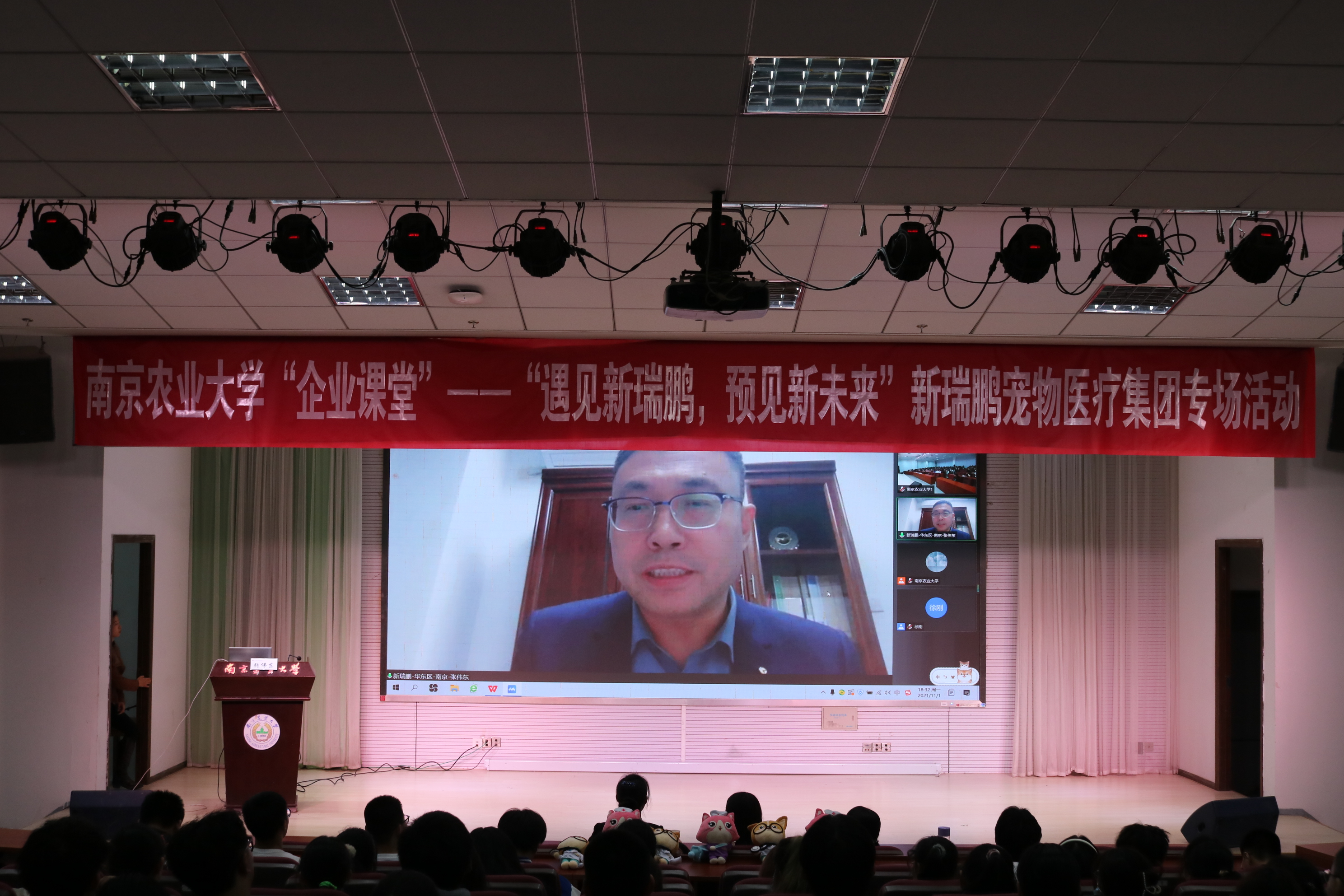 11月1日晚上6:30,南京农业大学“企业课堂”—-新瑞鹏宠物医疗集团专场活动“预见宠物医疗行业·预见美好未来”在教四楼报告厅举行。新瑞鹏宠物医疗集团华东人力资源经理张蒙,南京农业大学学生工作处副处长吴彦宁,新葡萄8883官网AMG党委副书记刘照云,辅导员徐刚、李欣欣到场参加,200余名感兴趣的学生到场参与。新瑞鹏宠物医疗集团华东副总经理张伟东作“宠物医疗行业发展趋势”主题报告,活动由刘照云主持。