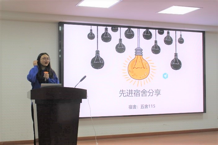 在先进宿舍分享环节,洪秋霞、侯呈霖、陈忠豪分别代表了5舍115、13舍307、6舍611分享了寝室学风建设、文化建设等经验,为新生开展寝室建设提供了宝贵经验,进一步促进了新生寝室凝聚力的行成,帮助新生尽快融入集体生活,适应大学生生活。
