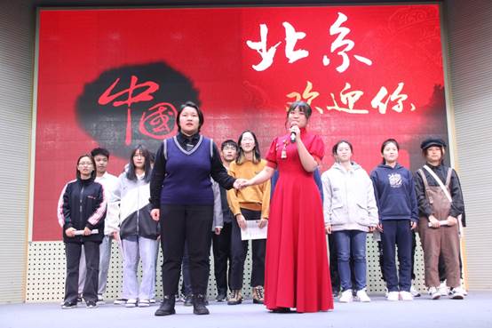 “以我之声,颂百年强音”环节,各班级依次上台接唱红歌,参赛选手积极接唱,让本环节妙趣横生。