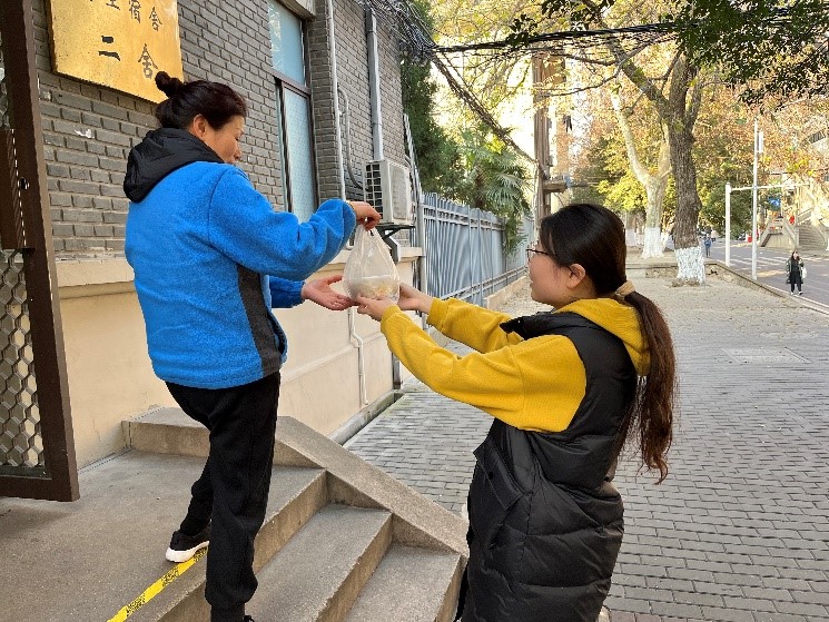 活动结束后学生们将自己亲手制作的水饺送给校园的保洁阿姨、保安大叔、宿管阿姨等工作人员,感谢他们日日夜夜的付出,让他们感受到冬日里的温暖。