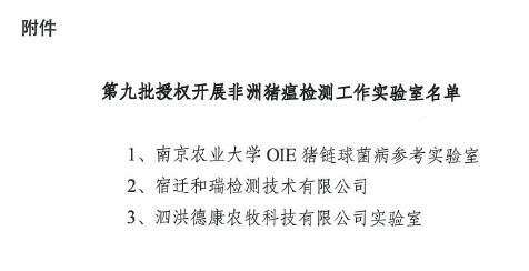 经中国合格评定国家认可委员会(CNAS)专家组评审,2022年1月20日南京农业大学世界动物卫生组织(OIE)猪链球菌病参考实验室顺利通过CNAS复评审与扩项,昭示该实验室具备按国际认可准则,出具的检测报告将在全球规定的范围内得到互认。至今,实验室共获得CNAS认可的项目包括生猪养殖病原以及牛病原的检测,实验室同期通过了江苏省动物疫病预防控制中心生物安全现场评审和检测能力比对试验,授权开展非洲猪瘟检测。同时,实验室加入由青岛立见生物科技发起的“标准化检测实验室联盟”单位,推动实验室检测物质标准化的规范和应用。