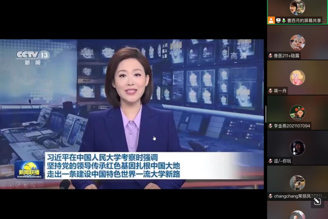 2022年5月4日,新葡萄8883官网AMG召开集中学习习近平总书记在中国人民大学考察时的重要讲话精神会议,应疫情防控要求,本次学习会以“线上+线下”形式开展。新葡萄8883官网AMG研究生辅导员安琪出席本次学习会,学院研究生通过线上、线下多种形式积极参与。