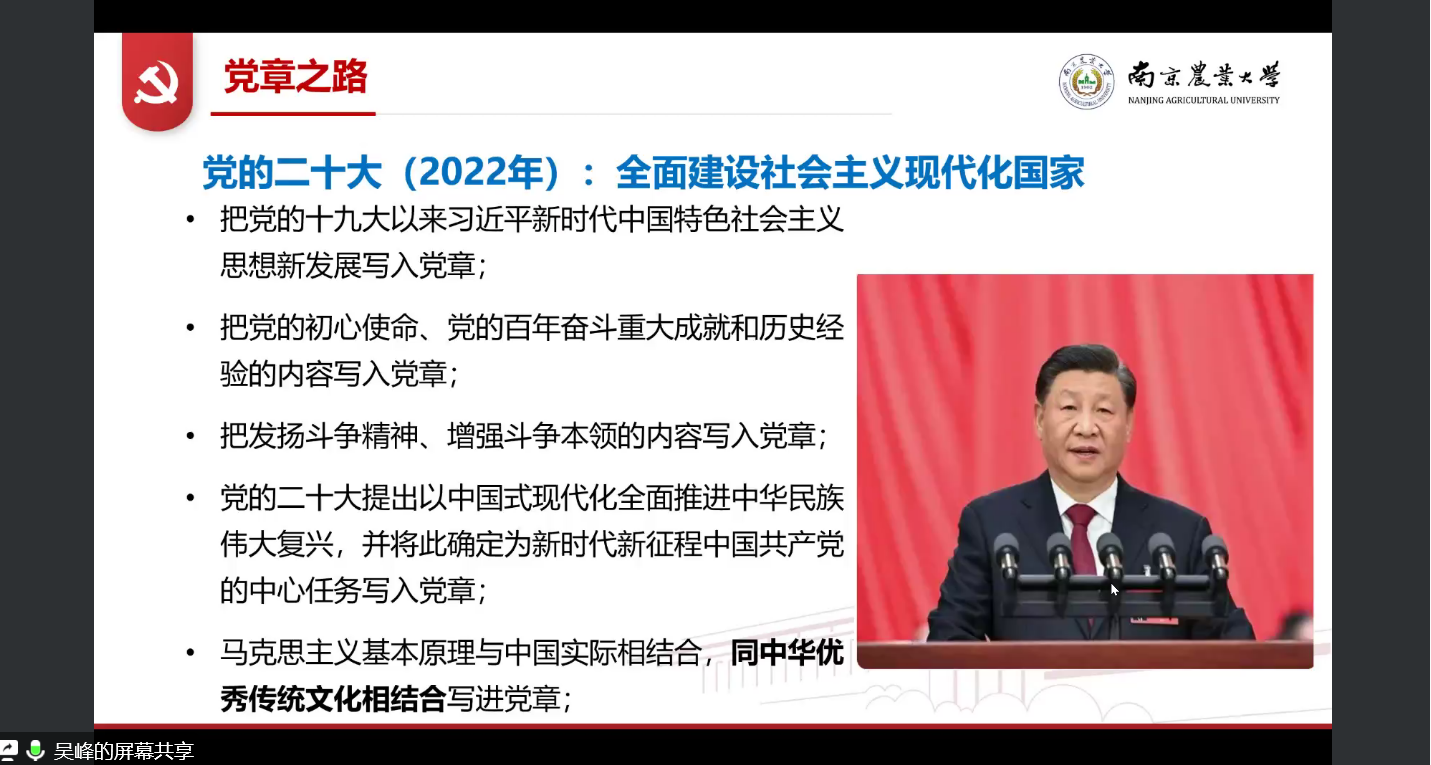 11月2日下午5点,我院通过腾讯会议举行了“永不退色的信仰”入党积极分子线上实践教学活动。本次报告由动物科技学院党委副书记吴峰主讲,新葡萄8883官网AMG2022级秋季全体新发展入党积极分子线上参会。本次线上教学活动的主题是“永不褪色的信仰--党章之路”。