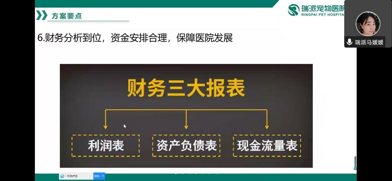 作为本次培训的主讲人,马媛媛女士首先向参赛选手介绍了宠物诊疗行业的发展历史,宠物医疗市场规模,宠物医疗产业链关系,战略思维以及全国各地的竞争状况。接着介绍了瑞派公司的成长历史,公司的运营理念以及人才培养计划。全方位向同学们展示了瑞派的经营模式,言辞恳切真诚,赢得了同学们的热烈掌声。