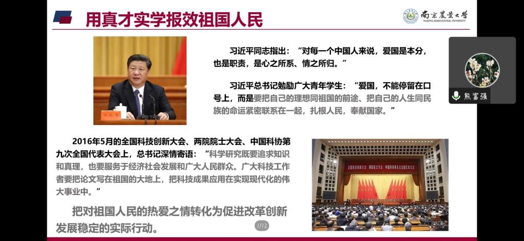 10月20日晚5:40,为遵守学校疫情防控管理规定,我院通过腾讯会议举行了“逐梦时代的使命”入党积极分子实践教学活动,本次报告由南京农业大学党委组织部副部长熊富强主讲。新葡萄8883官网AMG2022年秋季全体新发展入党积极分子和上半年新发展党员参会。报告由新葡萄8883官网AMG党委书记姜岩主持。
