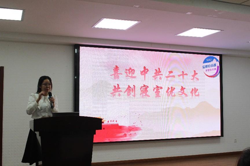 在党的二十大主题演讲中,各寝室成员代表结合自身实际,以新时代青年的青春姿态围绕“青年担当”、“强农兴农”等主题进行演讲。一词一句、一言一语,都表达出同学们对于党和国家的诚挚热爱,更将以实干担当展现青春力量。