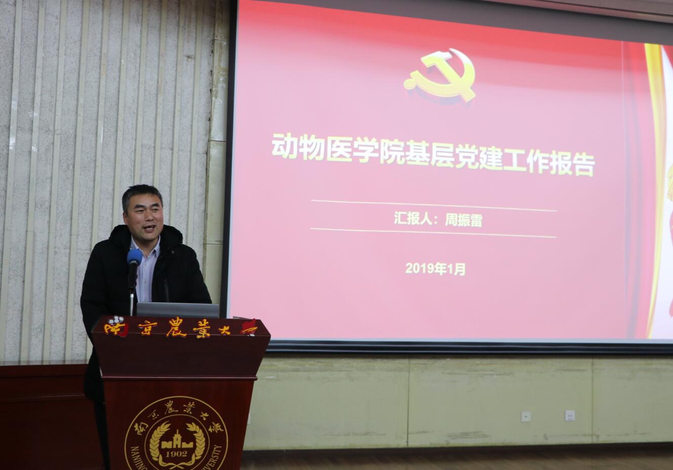 首先,党委副书记(主持工作)周振雷作学院2018年党建工作报告。周振雷从党建责任履行情况、党建建设进展情况、思想政治工作等三个方面做了系统报告,全面汇报了学院2018年党建工作情况和成绩,也分析了存在的不足和进一步完善的方向。