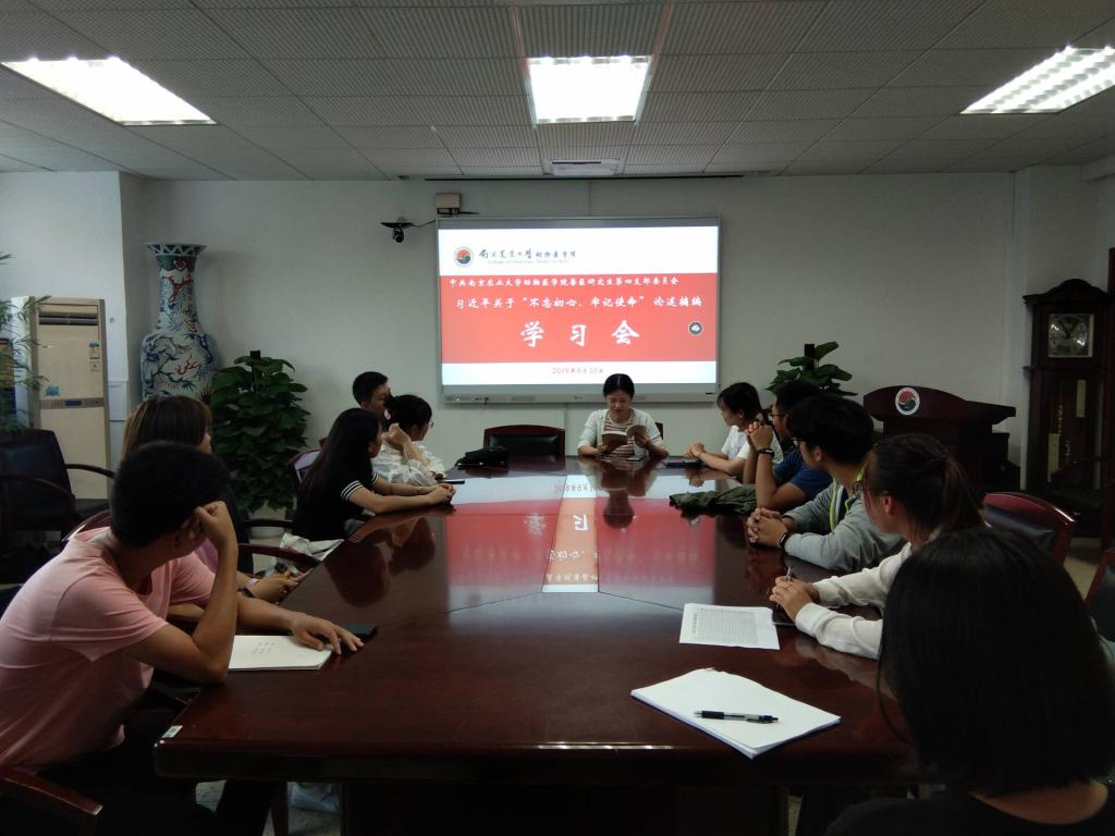 9月30日下午13:30,中共新葡萄8883官网AMG兽医研究生第四支部委员会,在逸夫楼3036召开《习近平关于“不忘初心、牢记使命”论述摘编》学习会。研究生专硕第四党支部全体党员到场参加。