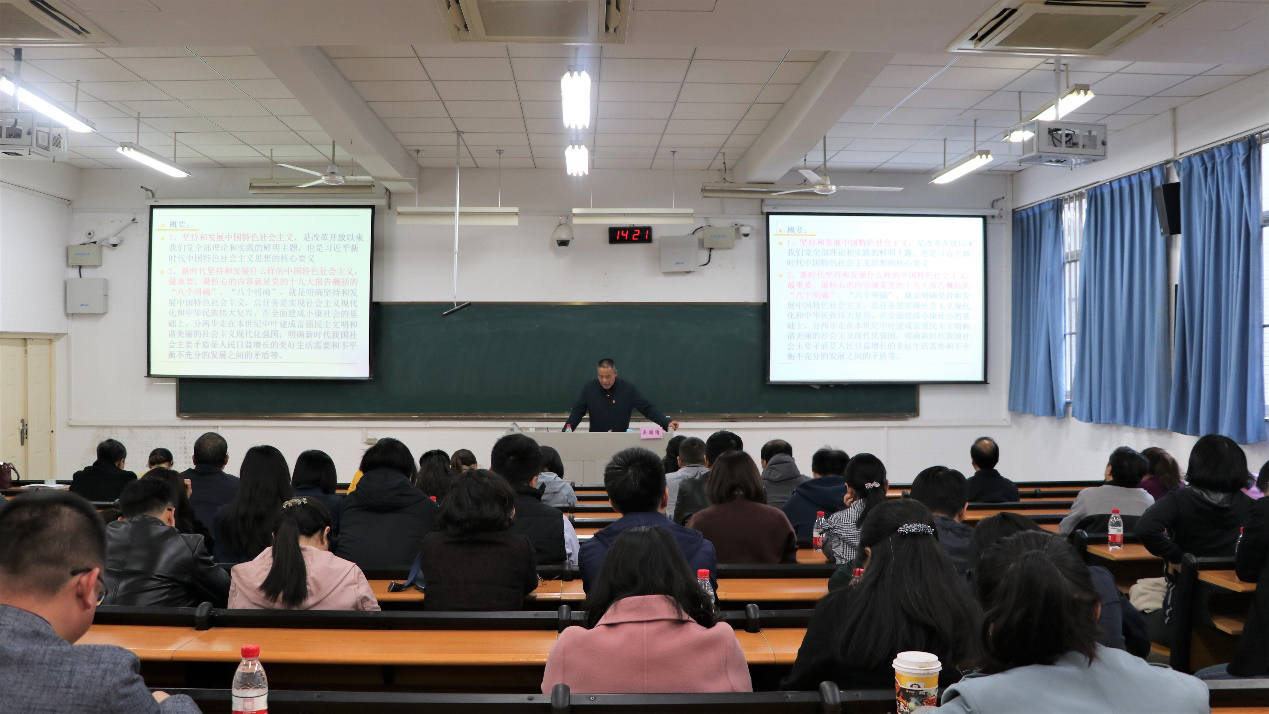 2020年11月11日下午2:00,新葡萄8883官网AMG全体教师在教学楼C103集中学习了《习近平谈治国理政》第三卷。本次学习由马克思主义学院吴国清教授主讲,党委书记姜岩主持,新葡萄8883官网AMG全体教师参加了本次学习。