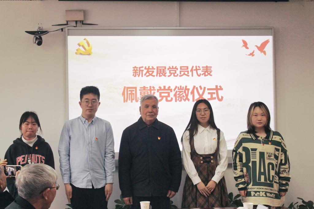 退休党员、新葡萄8883官网AMG首任院长郑明球,为新发展党员代表佩戴党徽。雷治海带领全体党员重温入党誓词。