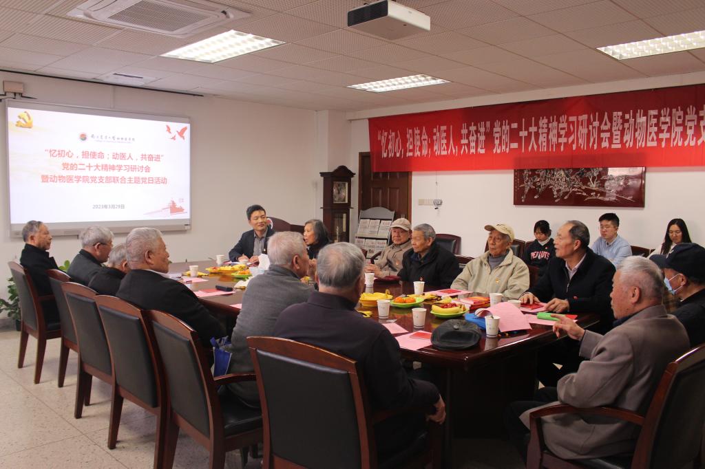 3月28日下午,新葡萄8883官网AMG“忆初心,担使命;动医人,共奋进”党的二十大精神学习研讨会暨党支部联合主题党日活动于逸夫楼3036举行。马克思主义学院教授吴国清、动医院退休教工党支部书记雷治海和退休教工党支部、临床兽医学研究生党支部以及本科生第一党支部党员代表参与本次活动。活动由新葡萄8883官网AMG党委副书记李云锋主持。
