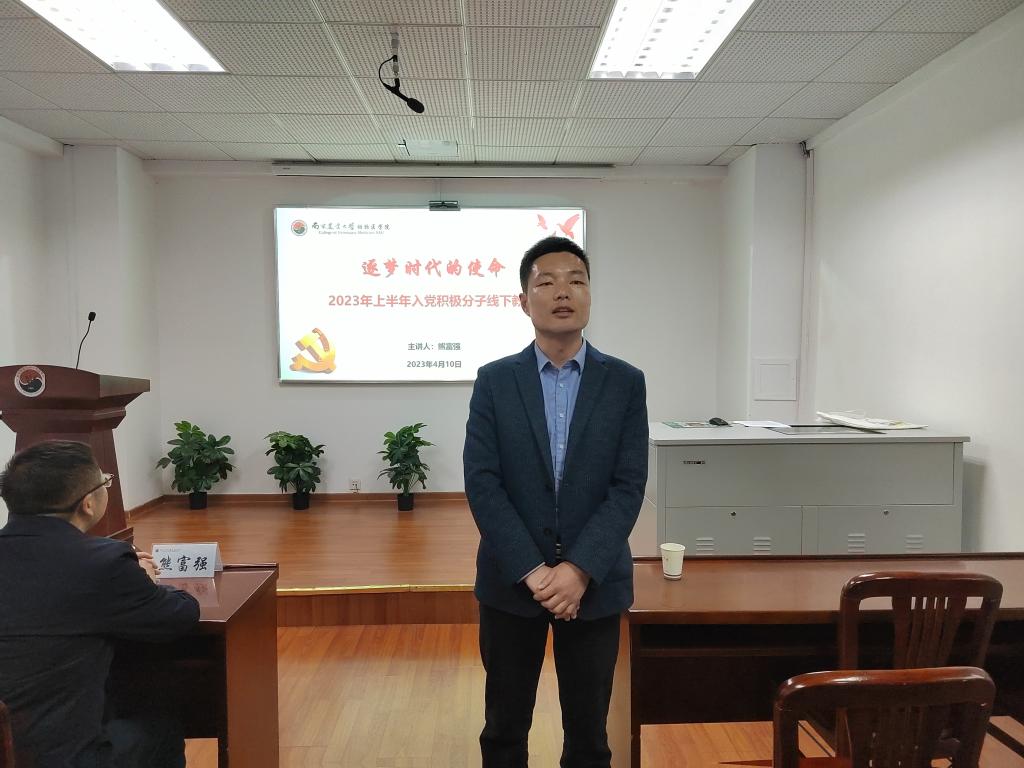 4月10日下午,我院在逸夫楼3044举行了“逐梦时代的使命”2023年上半年入党积极分子线下实践教学活动。本次报告由南京农业大学党委组织部副部长熊富强主讲。新葡萄8883官网AMG2023年上半年全体新发展入党积极分子参会。报告由新葡萄8883官网AMG党委副书记李云锋主持。本场报告共分三个部分。