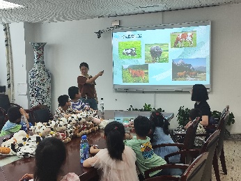 活动中,志愿者通过视频、PPT讲解等形式,深入浅出,介绍了奶牛的形态特征、奶制品生产加工流程等科普知识。