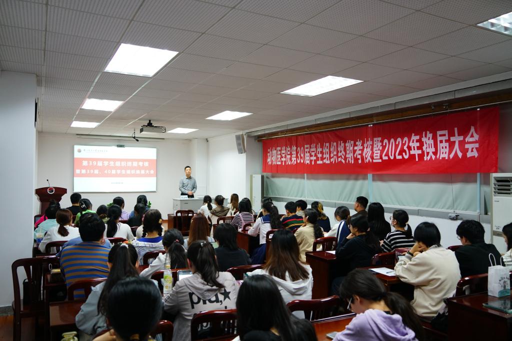 会议伊始,李云锋进行大会致辞,他对学院第39届学生组织一年来的工作给予了肯定和认可,对大家一年来付出的努力以及对学院建设做出的贡献表示感谢,并对第40届学生组织成员作出殷切期盼,第一是要始终坚持爱党爱国,做到时刻听党话,永远跟党走;第二是要热爱学校,热爱学院,熟悉校情、院情;第三是要热爱自己的专业,厚植爱农情怀,继续为我国兽医事业贡献自己的青春力量。