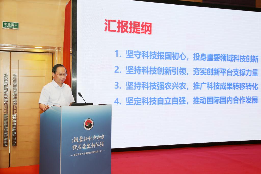 董维春致辞,他充分肯定了学院近年来围绕科技创新开展的各项工作,对学院在学科平台建设、专业学位教育、科技成果转化等创新举措取得的成效给予了高度评价。他勉励广大教师深刻领会科技创新对于农业特色世界一流大学建设的战略意义,切实提高政治站位,积极担负起实现科技自立自强的新使命;聚焦有组织科研,着力构建学院科技创新工作的新格局;强化服务管理,努力营造良好的科研创新生态环境。