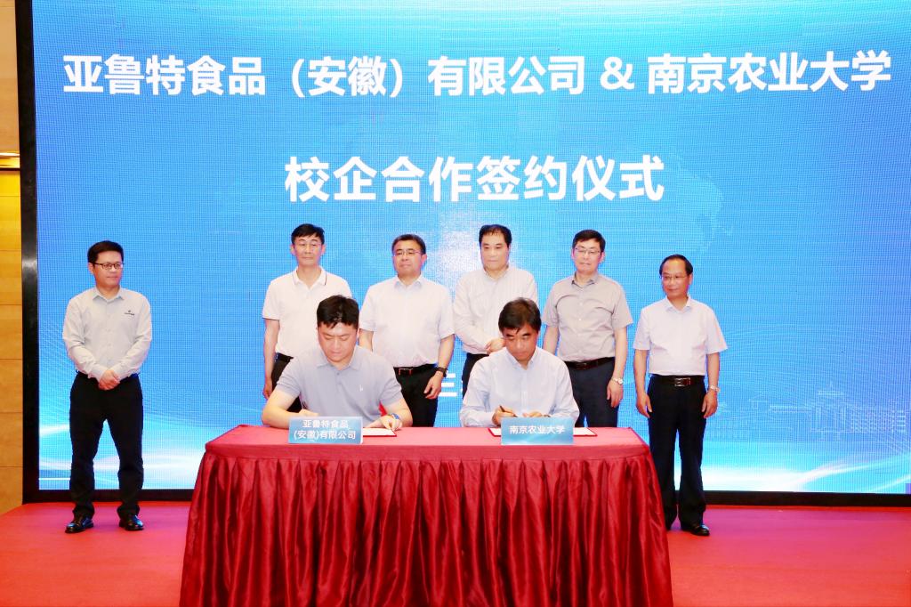 会上举行了“校企合作签约仪式”,许泉代表学校分别与江苏立华牧业股份有限公司、江苏百英生物科技有限公司、亚鲁特食品(安徽)有限公司签署合作协议。