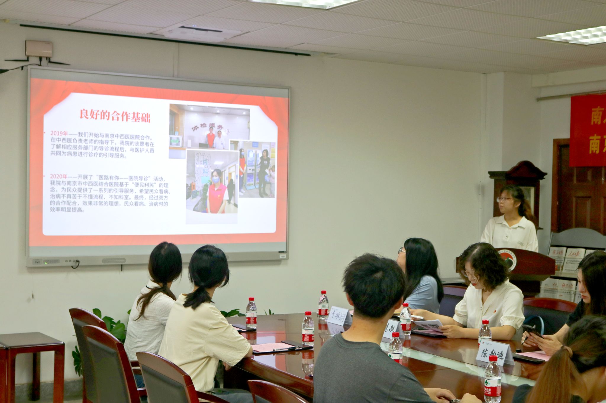 谈雯静代表团队作《“微笑守护者”志愿服务项运营现状》专题汇报,双方过往合作基础、项目运营成效、下一阶段计划等方面展开汇报,并对医院为在校大学生提供志愿实践平台表示衷心的感谢。
