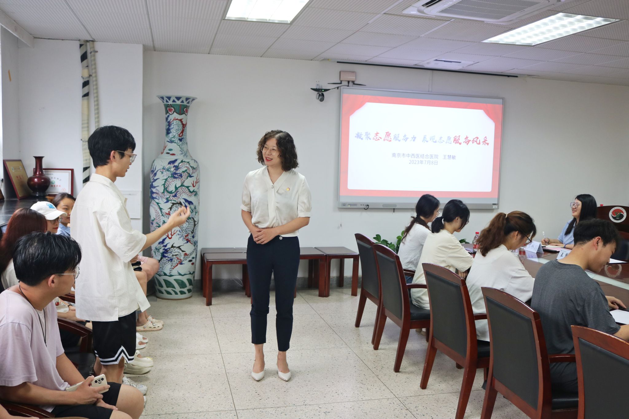 会上,王慧敏以《凝聚志愿服务力量,展现志愿服务风采》为题,从“志愿服务岗位体验”切入,以医院特色“助老理念”,诠释了“为什么要参与志愿服务?”“如何为他人提供服务?”,鼓励广大青年志愿者坚守岗位、主动服务,用志愿涵养内心。