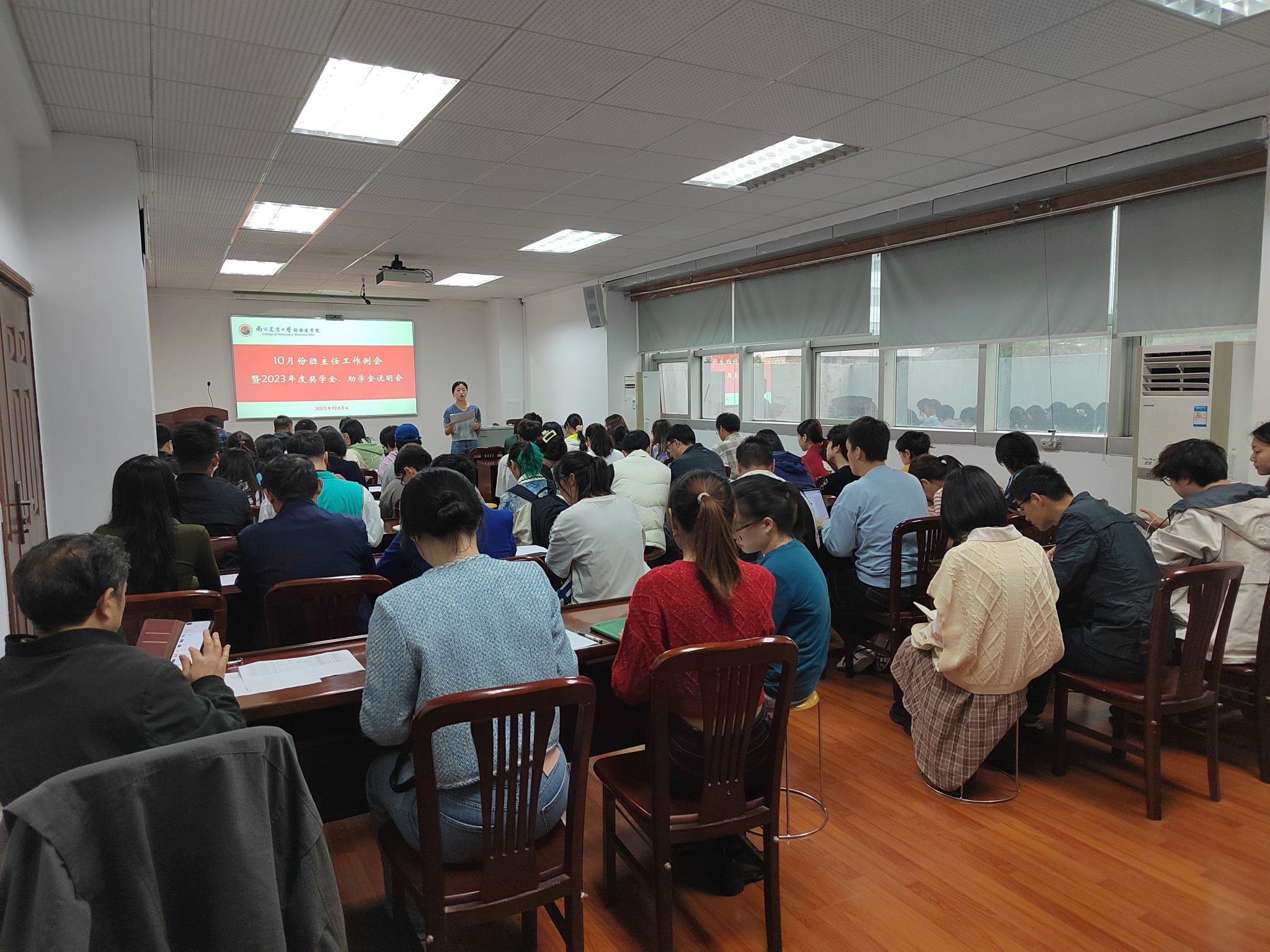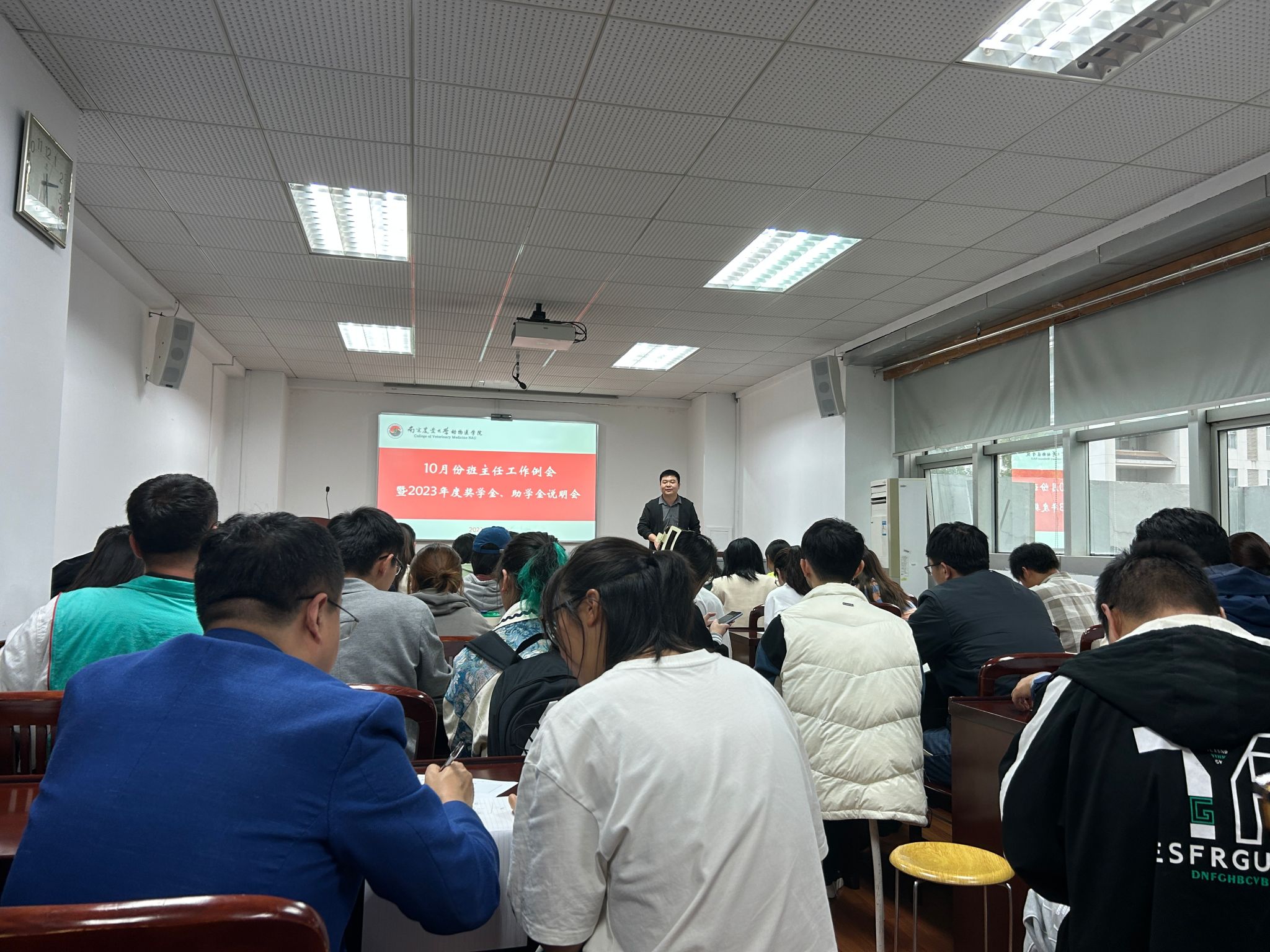 10月8日下午,新葡萄8883官网AMG10月份本科生班主任工作例会暨2023年度奖学金、助学金说明会在逸夫楼3044召开。学院35个班级班主任和班委到场参与,院党委副书记李云锋,辅导员徐刚、李欣欣参会。