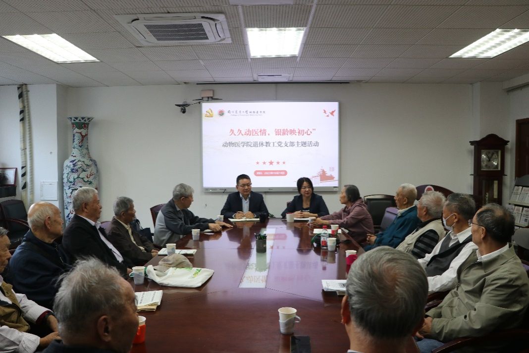 金风送爽、丹桂飘香,为迎接一年一度的重阳节,弘扬中华民族尊老、敬老、爱老的传统美德,感谢退休教师多年来为学院发展的辛勤付出。1 0 月1 8 日上午,学院退休党支部举办了“九九动医情 银龄映初心 ”主题党日活动。学院党委书记姜岩、副院长(主持工作)平继辉出席了座谈活动。