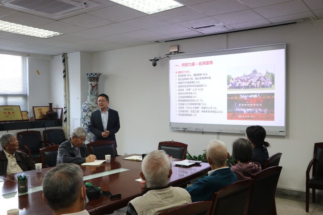 姜岩首先传达了中共南京农业大学第十二届委员会第十四次全体(扩大)会议的精神,分别对校党委书记王春春和校长陈发棣的主题报告内容进行了重点解读。平继辉从学科发展、人才培养、科研工作、国际合作等方面做了最新的院情介绍,并对学院目前重点推进的P3实验室建设情况向老教师们做了详细的说明。参加座谈会的老教师们纷纷建言献策,对学院近年来发展所取得成效表示肯定,并由衷希望学院在新一届领导班子的带领下,在未来取得更大的进步与发展。