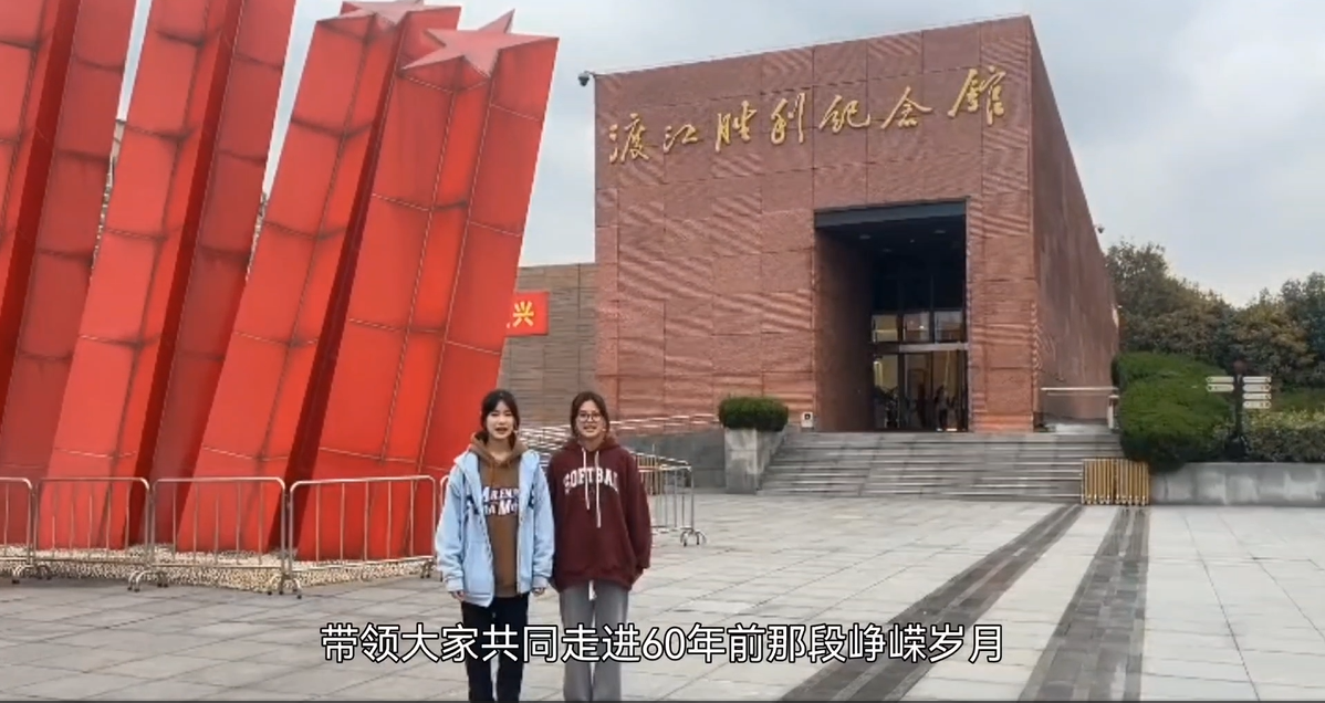 在视频《以吾少年意气,与祖国万里恒昌》中,跟随着动医2304班的视角,我们走进渡江胜利纪念馆,隔着展台抚摸着当时留下的资料,感受战士们胜利的喜悦。