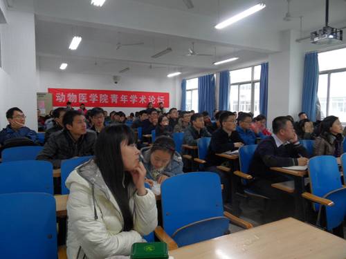 论坛中,青年教师郭大伟、潘子豪和宋晓凯以及博士研究生黄经纬和Muhammad Shahid Bilal分别做了题为《纳米银的抗白血病作用研究》、《构建EHV重组株表达犬瘟热病毒多联蛋白》、《Induction of protective immunity against E. tenella, E. necatrix, E. maxima and E. acervulina infections using multivalent epitope DNA vaccines》、《鸡巨型艾美耳球虫侵入部位特异性研究》和《Lipopolysaccharide derived from the digestive tract triggers the inflammation of uterus of dairy cows fed a high grain diet》的报告。每位报告人对自己的研究内容进行了精彩的阐述和展示,评委们针对其中存在的问题提出了专业的建议并与同学们进行了讨论。