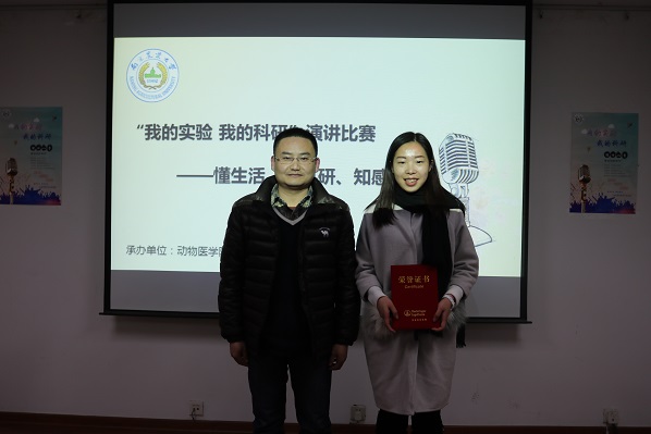 经过近一个半小时的精彩比赛,李佳容、唐芳玲、刘杰分别获得一、二、三等奖,评委老师为其颁奖并合影留念。本次活动一方面为同学提供了展现自我风采、表达自我情感的平台,另一方面有助于同学树立正确的科研生活观,使同学们能更好的完成科研、享受科研。