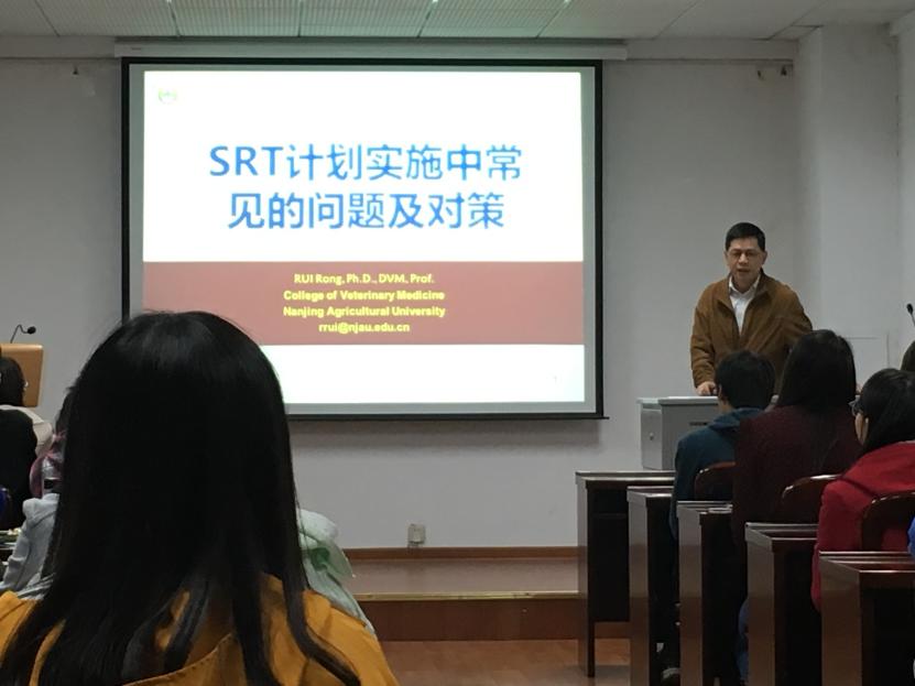 最后,芮荣教授作了“SRT计划实施中常见的问题及策略”给同学们详细介绍了科研工作的一般程序及常见问题与对策,并指导学生利用SRT计划来学习,如:做好科研原始记录,按计划取的研究工作进展等。