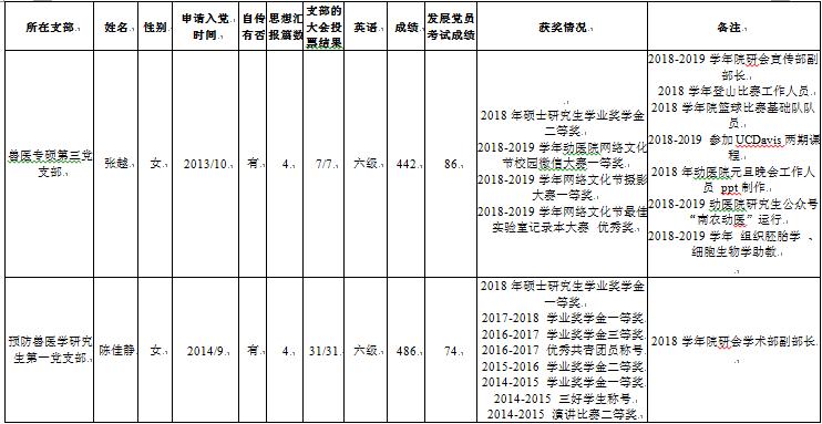 根据学院学生党员发展工作安排,结合个人思想政治现实表现等综合情况,经由本人申请、各支部推选、党支部答辩、党员代表投票表决等环节,我院党委研究决定,拟发展张越等九位同志为中共预备党员,现公示如下: