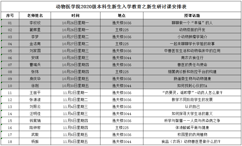 附件:学院2020级本科生新生入学教育之新生研讨课安排表
