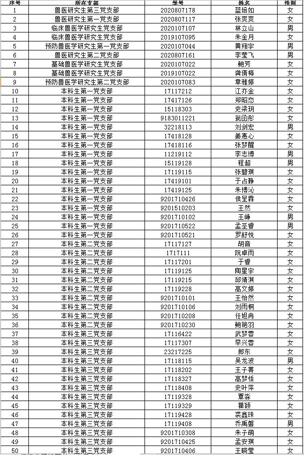 经个人申请、材料审核、支部讨论、团委审核,现决定,拟将如下同学推优为积极分子,具体名单如下: