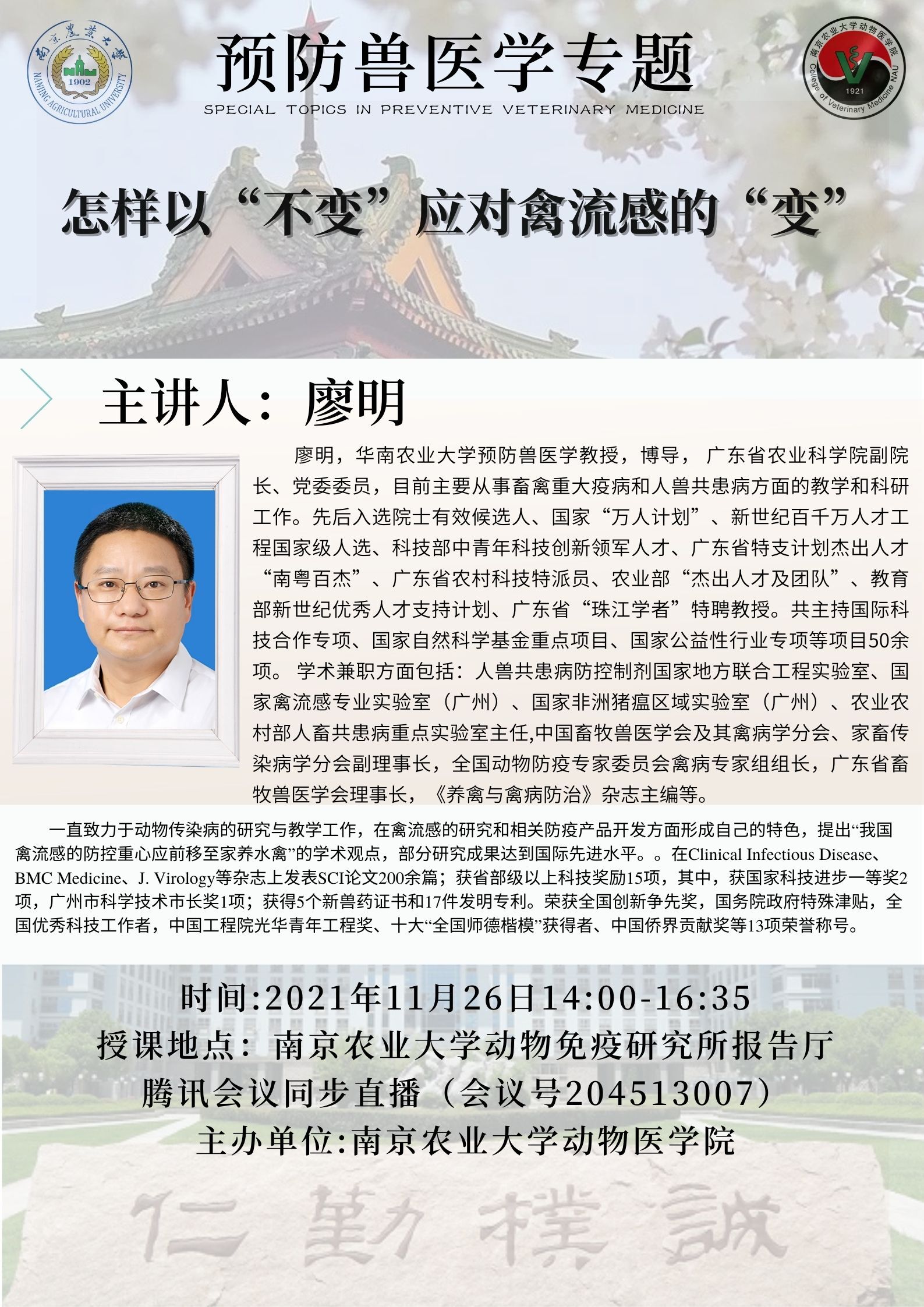 【研究生教育】《预防兽医学专题》-第九讲:怎样以“不变”应对禽流感的“变”(廖明)