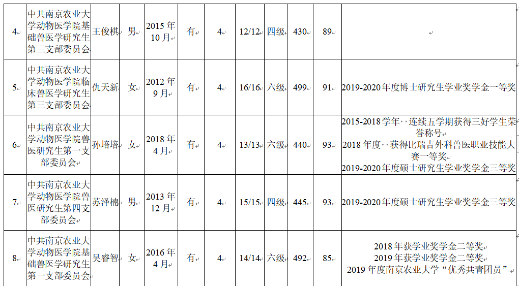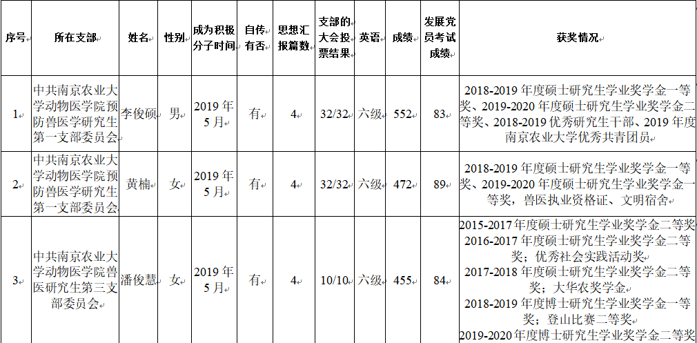 根据学院学生党员发展工作安排,结合个人思想政治现实表现等综合情况,经由本人申请、各支部推选、党支部答辩、党员代表投票表决等环节,我院党委研究决定,拟发展李俊硕等8位同志为中共预备党员,现公示如下: