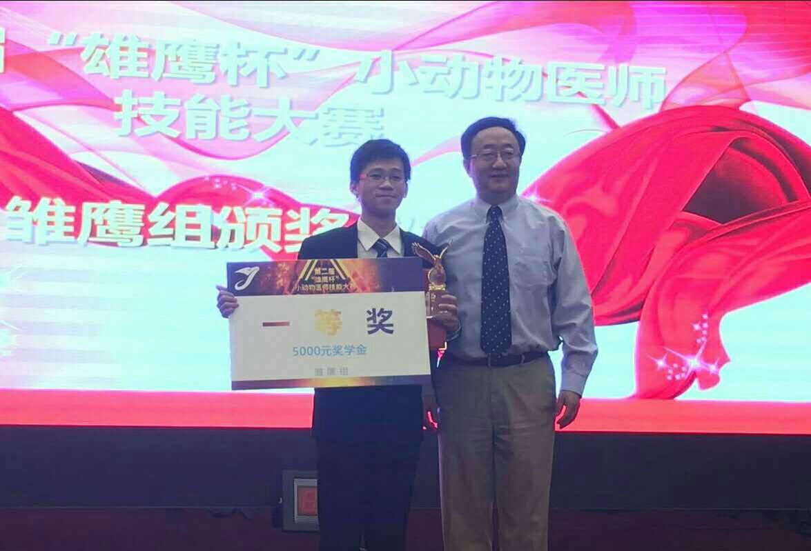 热烈祝贺我院学生覃翀豪在2016年“雄鹰杯”小动物医师技能大赛中夺得桂冠
