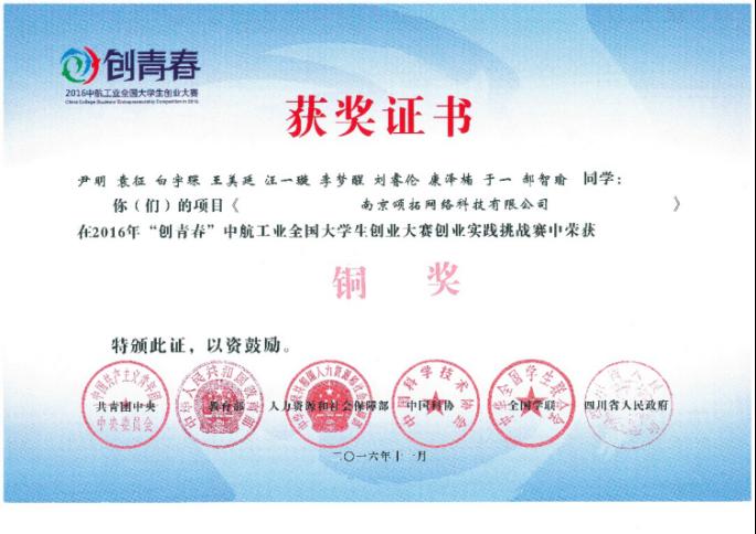 热烈祝贺我院学子牵头的作品获得“创青春”全国大学生创业大赛铜奖